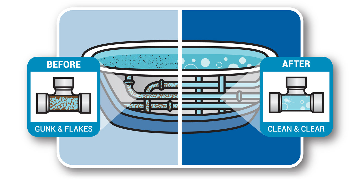 Ouster Jetted Tub Cleaner is expertly formulated to tackle the hidden buildup lurking in your jetted tub's plumbing. Over time, lotions, body oils, soap buildup and other substances from everyday use accumulate in the tub’s pipes and jets, clogging the system and causing cloudy, unpleasant water. With just one treatment every 30 days, it scrapes and purges interior pipes, removing contaminants and ensuring your jets stay clean and odor-free. Say goodbye to unpleasant black, brown, or gray flecks and enjoy a pristine soaking experience.