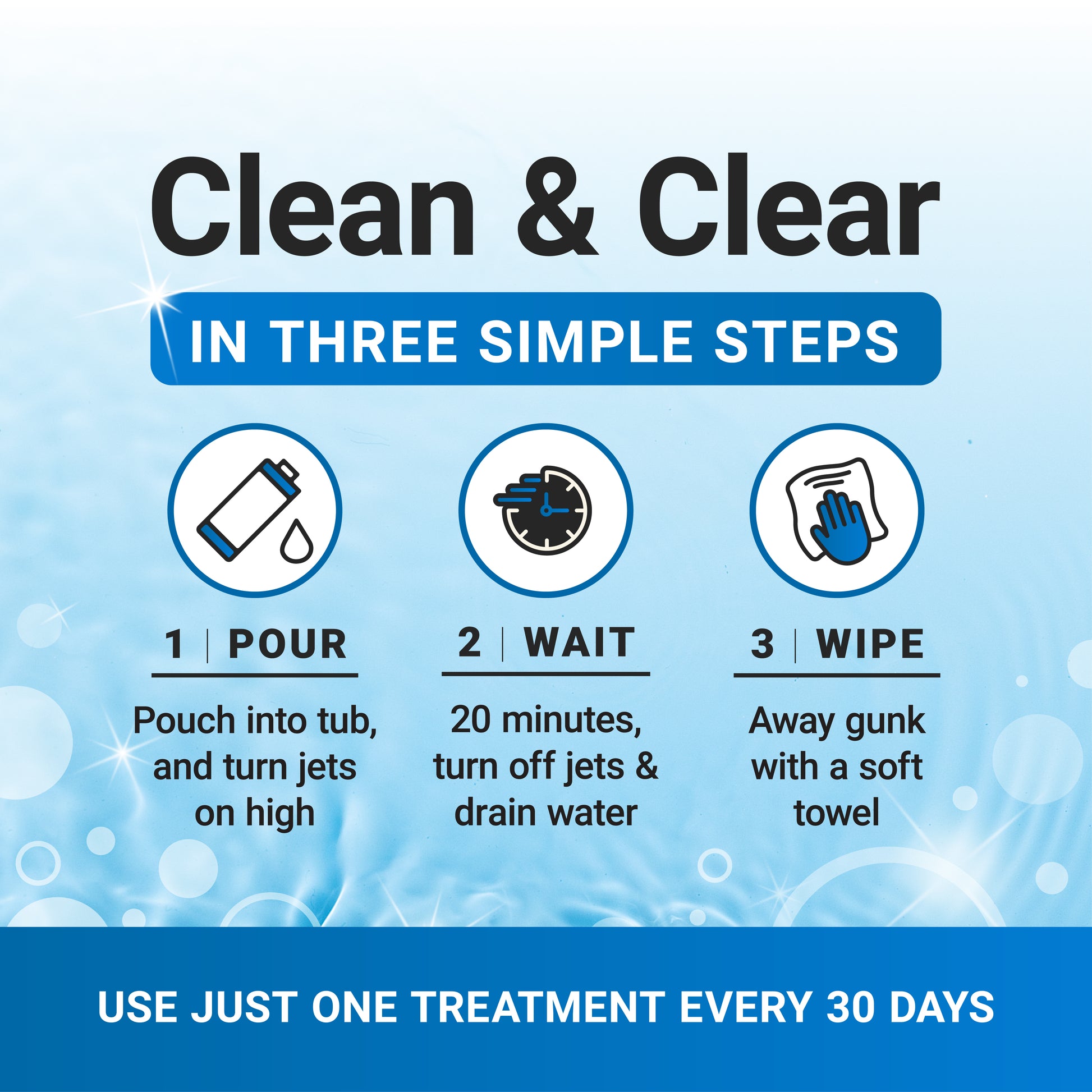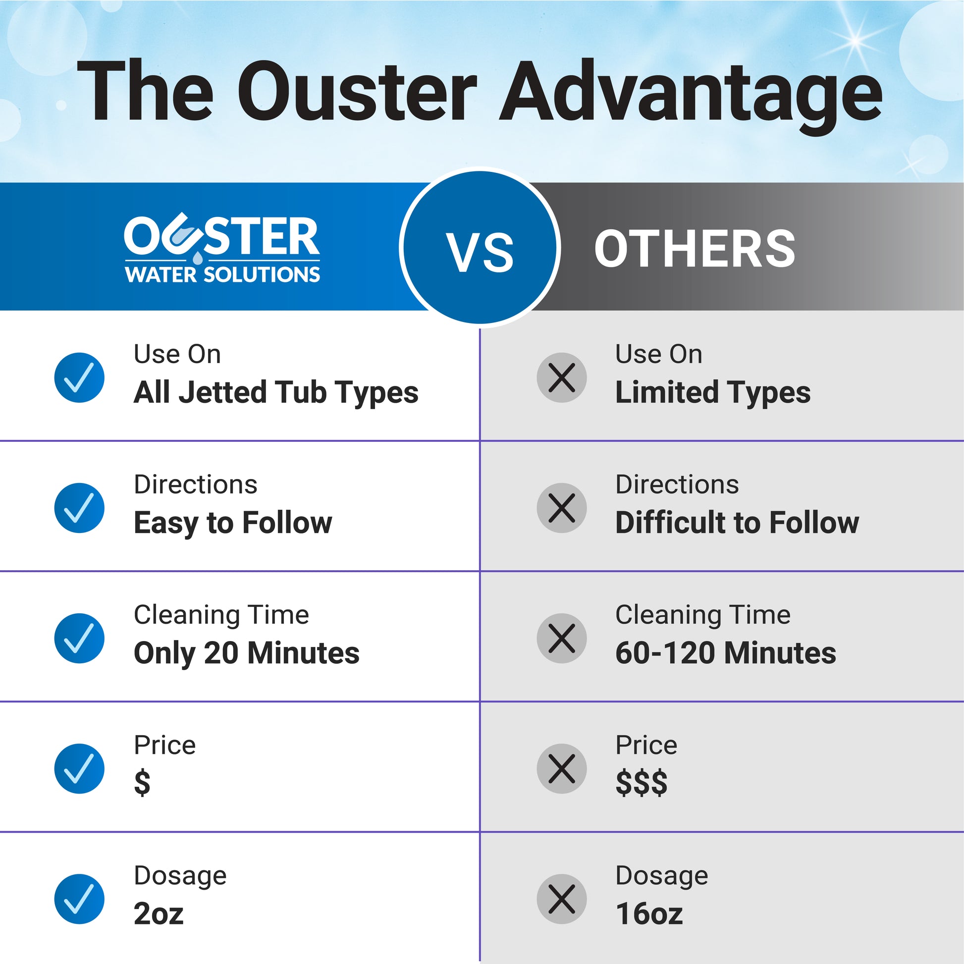 Ouster Jetted Tub Cleaner is expertly formulated to tackle the hidden buildup lurking in your jetted tub's plumbing. Over time, lotions, body oils, soap buildup and other substances from everyday use accumulate in the tub’s pipes and jets, clogging the system and causing cloudy, unpleasant water. With just one treatment every 30 days, it scrapes and purges interior pipes, removing contaminants and ensuring your jets stay clean and odor-free. Say goodbye to unpleasant black, brown, or gray flecks and enjoy a pristine soaking experience.